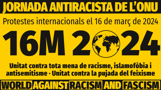 Les organitzacions sotasignades demanem protestes àmplies i unitàries contra el racisme i l’extrema dreta el dissabte 16 de març de 2024, i durant la setmana següent, per commemorar el Dia de l’ONU contra el racisme, un dia inaugurat per commemorar la massacre de joves que es van oposar a l’apartheid racista a Sud-àfrica el 1960.